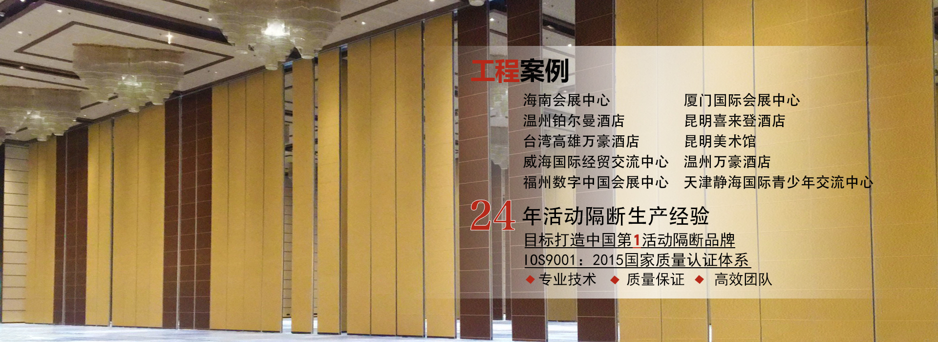 135 3317 7889 何經理/189 8866 7889李經理廣東一固隔斷制品有限公司成立于1998年,國家高新技術企業,位于中國佛山市南海區里水鎮,是一家專業從事活動隔斷和辦公室玻璃隔斷系統開發(fā),銷售,生產和售后服務的一站式生產廠商。公司產品廣泛應用于星級飯店,寫字樓,餐廳,宴會廳,會議中心或會展中心等商業場合,提供便捷有效的空間管理解決方案。最高門板高度可達20米,最大隔音系數可達56分貝。 一固公司擁有兩個現代化的生產基地,占地超過10,000平方米,...